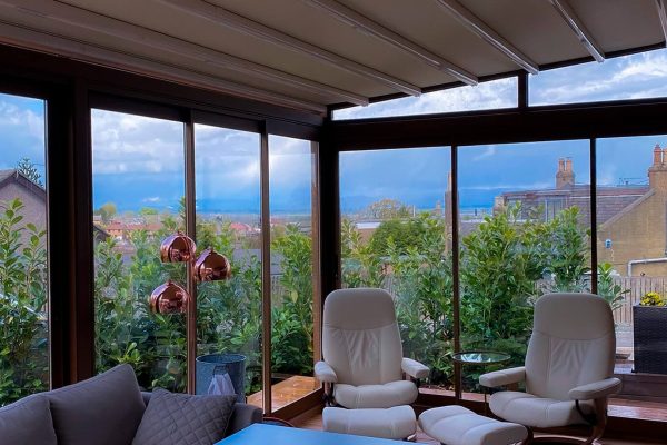 - Pour un espace cosy toute l’année -> parois fixes + stores ZIP.