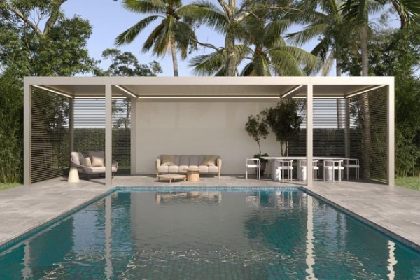 - Bioclimatic pergolas with adjustable louvers, to play with natural light and adapt to the weather.