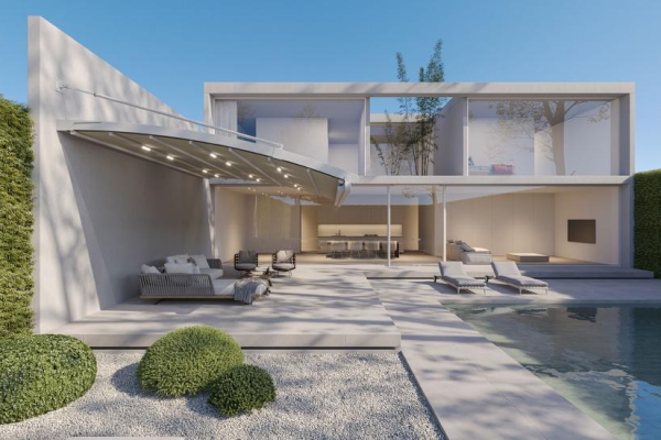 - Retractable PVC fabric pergolas, ideal for adjusting shade and brightness with refined aesthetics.